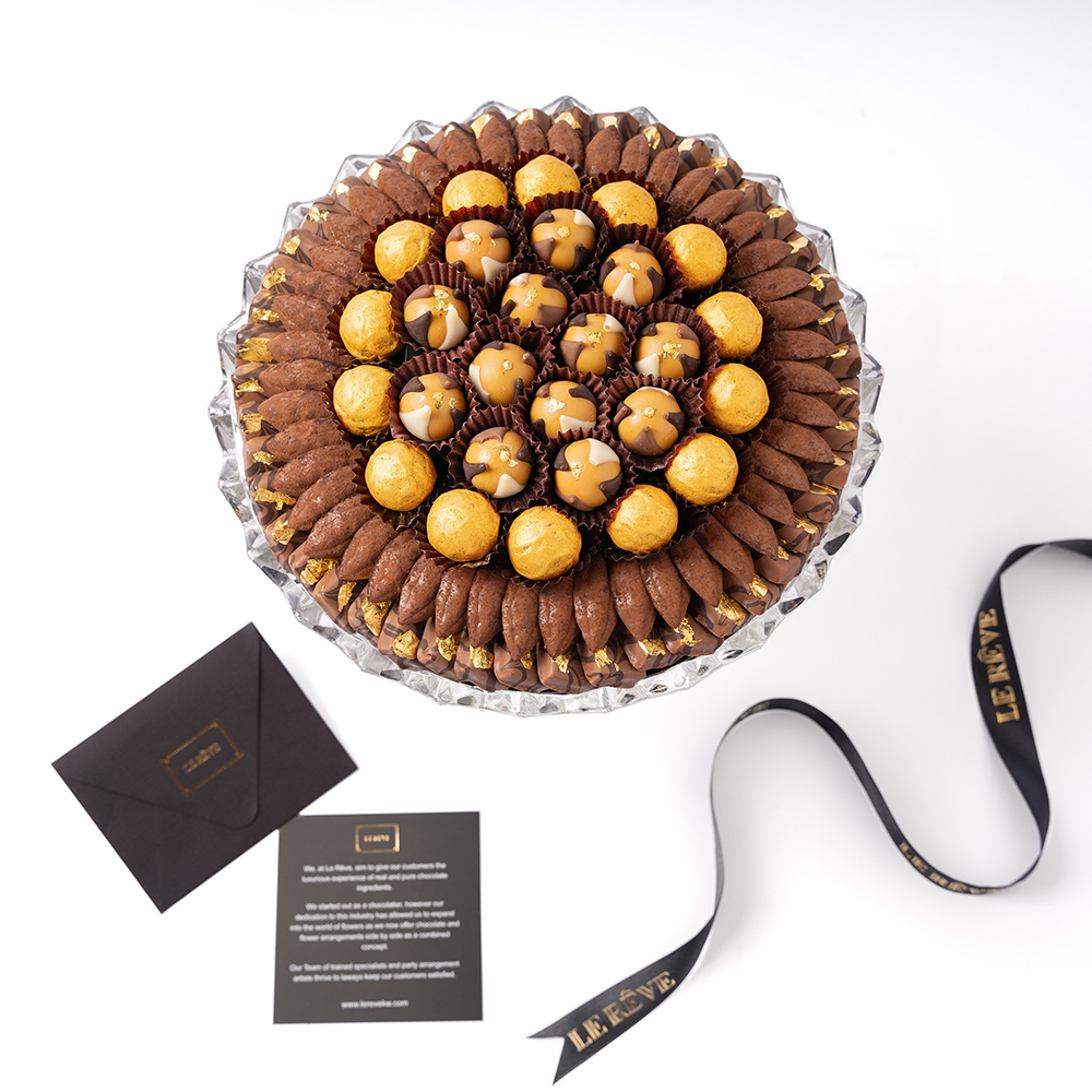 Crystal tray contains 1 KG of premium chocolates.