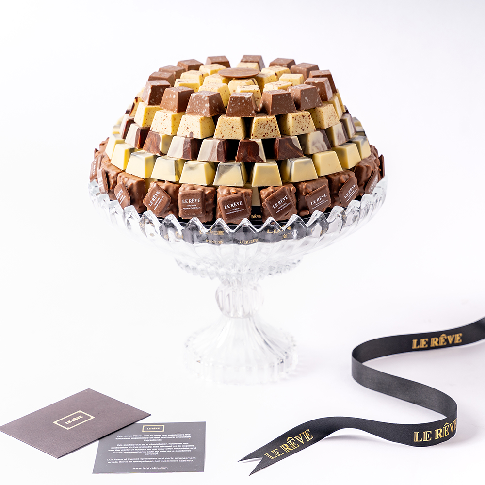 Crystal tray contains 1.500 KG of premium chocolates.